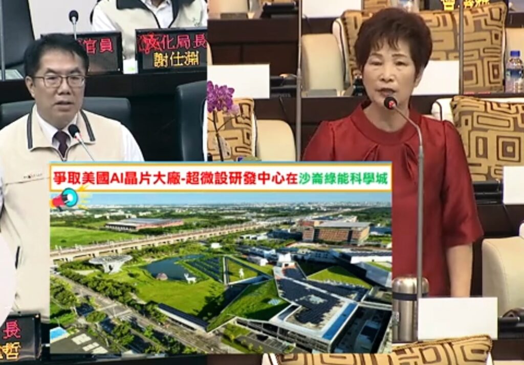 議員建議市府爭取高科技產業來台南沙崙綠能科學城設置研發中心,市長黃偉哲表示,台南市在土地、水電、能源、綠電、人才等各項條件上都很充分,非常適合科技廠商投資設廠,不只是輝達公司或超微半導體,許多國內外的重量級廠商,台南市都會積極爭取。