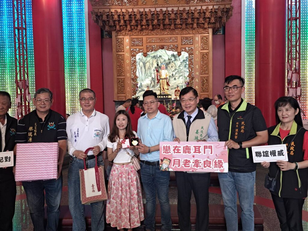 去(112)年,由臺南市政府民政局與正統鹿耳門聖母廟合辦多場單身聯誼,其中參加活動的吳先生與吳小姐於今年5月20日攜手邁入了婚姻的殿堂,成為此次活動首對結婚新人,為表祝福,特地於今(113)年6月8日在正統鹿耳門聖母廟舉辦了一場溫馨贈金牌送祝福儀式。