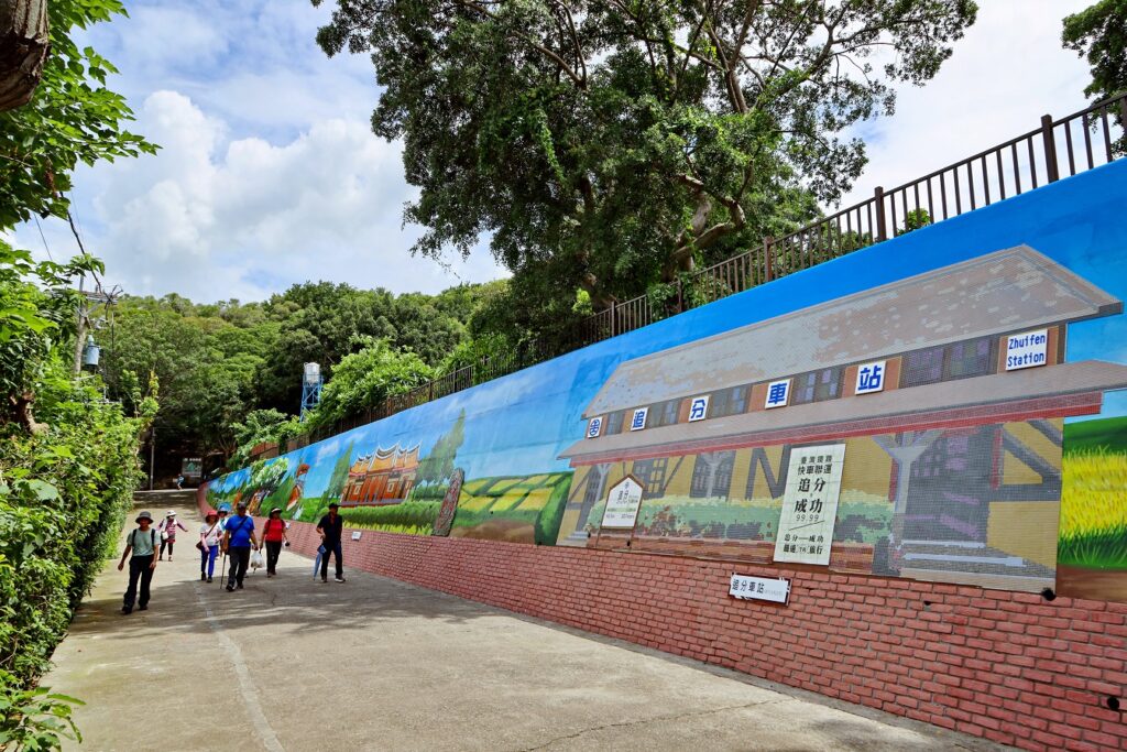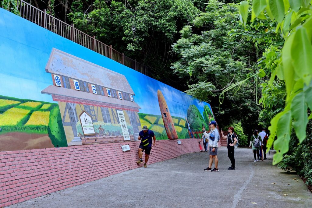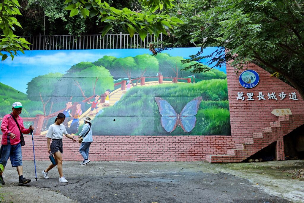 台中市大肚區萬里長城登山步道為海線著名休閒健行地點,位於登山步道入口的景觀彩繪牆,因牆面彩繪油漆年代久遠影響景觀,台中市政府觀光旅遊局彙集地方意見後重新規劃設計,近日重新彩繪完成。觀旅局說明,這座彩繪牆面長達112公尺,內容精彩細膩,融合大肚地區豐富的人文地理景觀,紛紛吸引遊客前來打卡拍照。