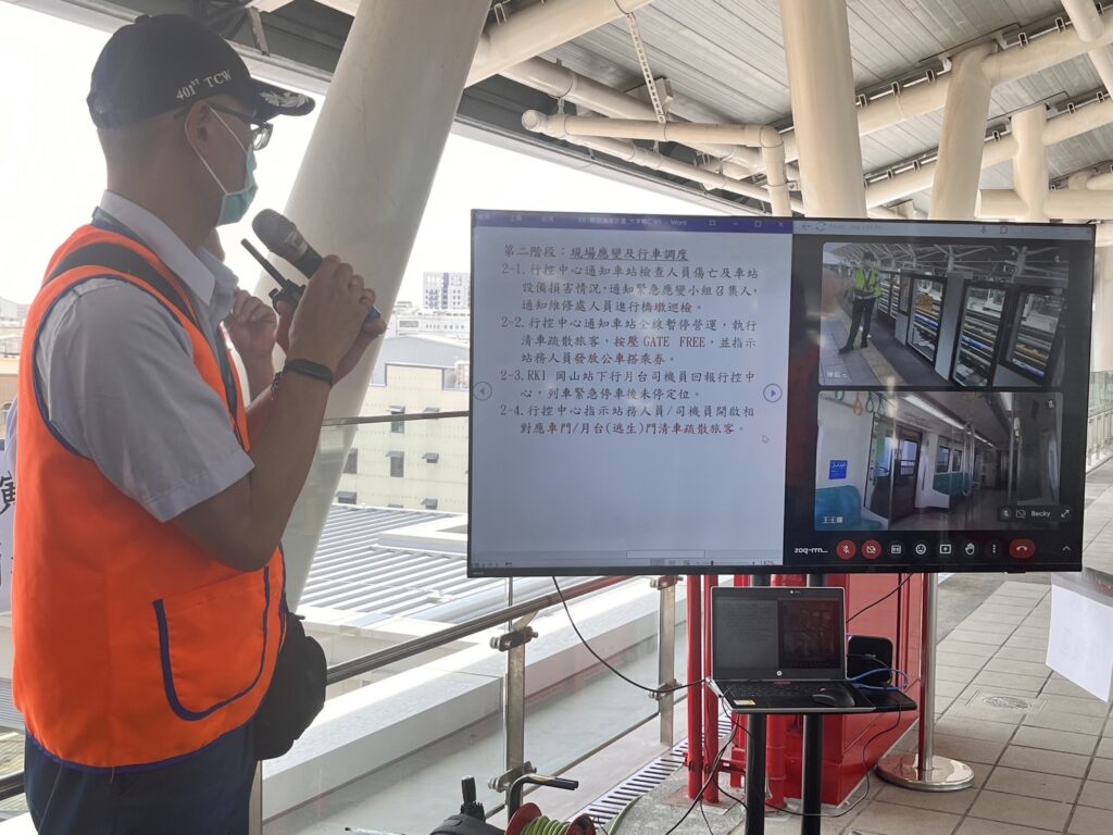 本次履勘作業包含分組簡報、文件檢視、實地勘查、模擬演練、分組討論及總結會議。履勘模擬演練情境為上行列車鄰近岡山車站時,發生5級地震,導致列車未能準確停靠月台定位,月台門無法正常開啟,相關車輛調度及人員的疏散應變措施。今日模擬演練順利完成。