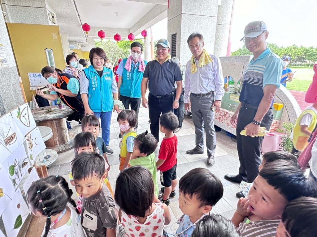 新塭國小也參與清潔大作戰,由謝桐偉校長帶領師生利用廢棄物製成工藝品,將作品佈置於適當區域,展現環境教育成果。
