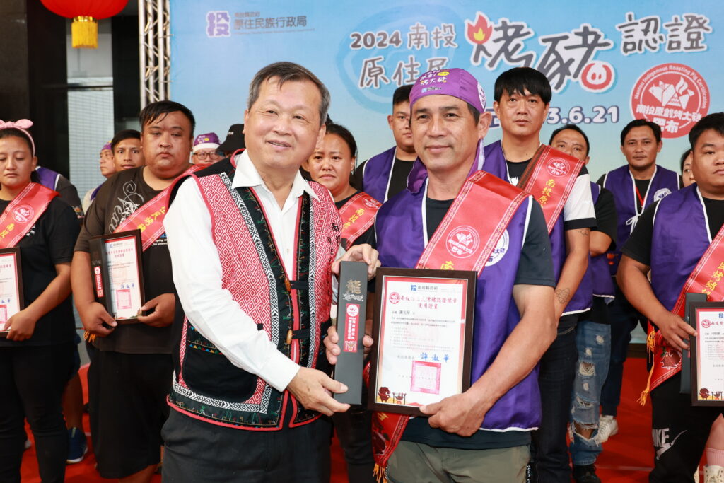 王副縣長說,為回應廣大市場需求、穩定部落產業發展,在縣長許淑華施政方針指導下,去年率全國先河,原創烤大豬認證活動,不僅助益原住民族烤大豬文化傳承,提高職人專業及烤大豬的品質,更有效提升部落經濟,受到高度肯定,已在國內餐旅市場形成一股原民烤大豬旋風;今年再添新進職人34位,獲認證職人已達80位,成為推升部落經濟的生力軍。未來也將於名間農產運銷中心原之驛商場規劃烤豬餐廳進駐,期待能為國人品嚐道地的原民烤大豬提供更便利、更多元的管道。
