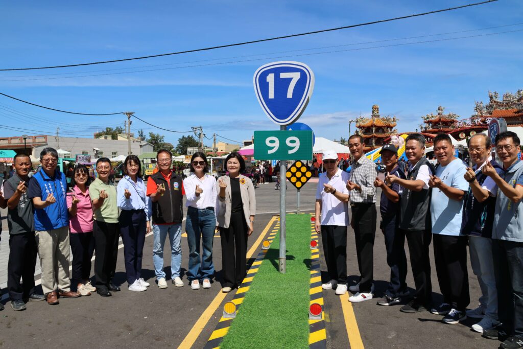 城鄉發展處長林長造說明,台17特色地標驛站「一起久久」營造計畫,係本府向觀光署爭取補助450萬元,並自籌50萬元,合計總經費500萬元,選定鄰近台17線99K里程處之興安代天府閒置空間,以「1799」「一起久久」之諧音,營造一處可供遊客及鄉親休憩之空間。本計畫除了增設停車空間、活動廣場及休憩座椅、棚架等服務設施外,最大的亮點就是將既有台17線公路99K里程處之指標牌、分隔島、AC道路、標線及標誌等1:1複製,讓遊客不用冒著生命危險跑到車水馬龍的路口拍照,只需要到本驛站停好車,停車場旁就有一座完全仿造的場景意象,可以供遊客盡情取景拍照及打卡。
