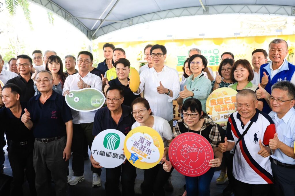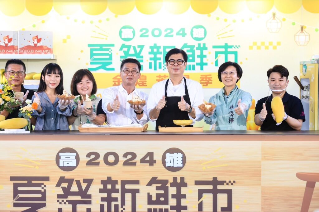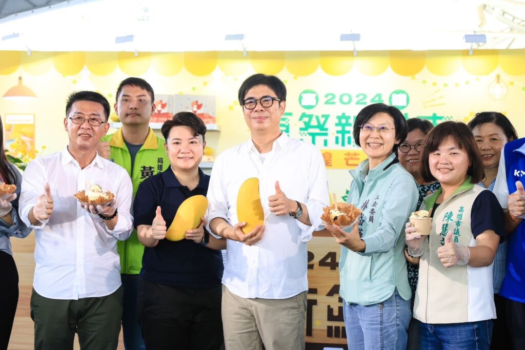 素有「芒果之王」稱號的金煌芒果進入產期,高雄市長陳其邁今(22)日出席於凹子底森林公園舉辦的「2024高雄夏祭新鮮市-金煌芒果季」活動,化身芒果行銷大使,並特製「光芒萬丈」金煌芒果霜淇淋,宣告芒果產季正式來臨,相揪全台民眾一起來呷冰,品嚐金煌芒果的特殊風味與Q彈口感!