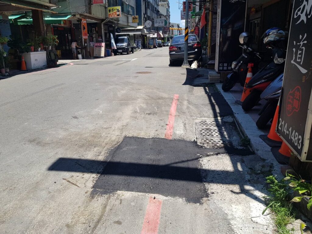 工務局指出,確認坑洞是側溝壁體破損造成後,22日晚上立即灌漿回填,除修補側溝的壁體破損處外,也將掏空的路面回填,經一日的靜置等待混凝土凝固後,24日上午前往該路段重新鋪設柏油,將路面回復平整的風貌,還給用路人安全的用路環境。