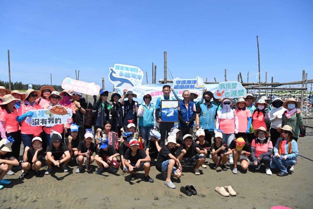 嘉義縣環保局27日在布袋鎮蛋糕沙灘舉辦2024護海行動「海好有蛋糕!」國家海洋日淨海活動,提升民眾對海洋環境生態保育理念,布袋鎮長蔡瑋傑、縣議員蔡信典及環保局長張輝川及布新國小兒童樂隊師生等人前往淨灘。