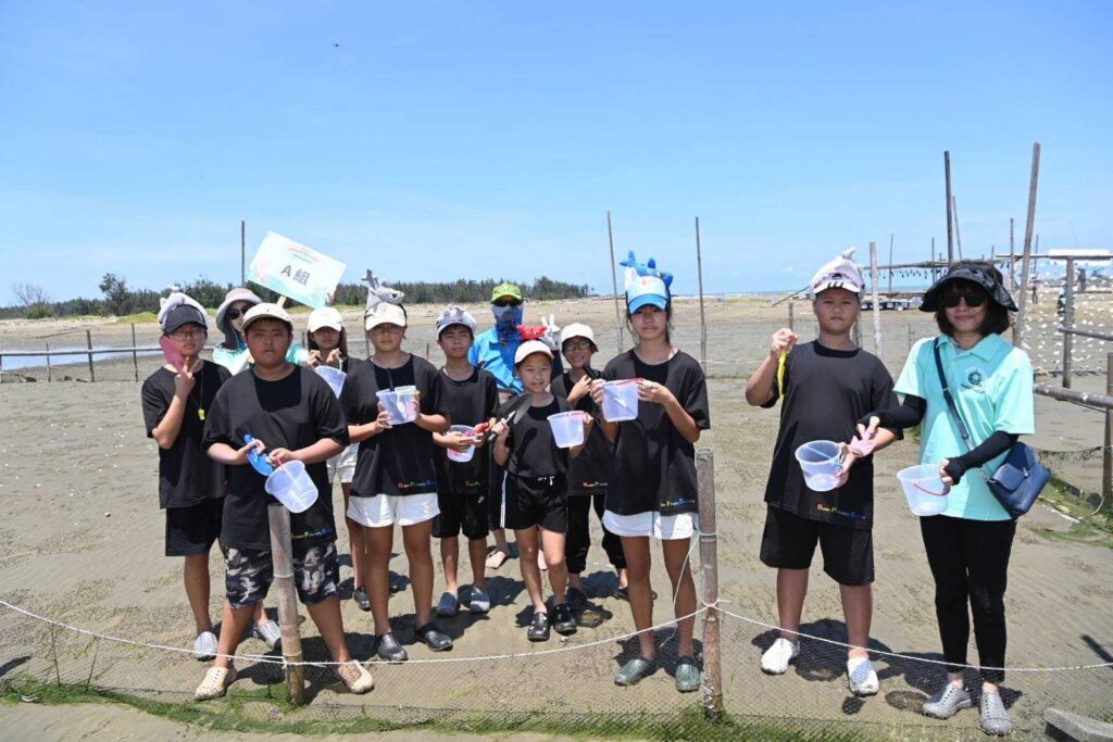 眾人今日前往布袋沿海清除海漂垃圾,淨灘過程加入生態導覽解說,將環境教育帶入生活,讓學童更了解家鄉的海洋。最後由布新國小學童攜手掛上蚵殼藝術品,完成海廢裝置藝術,象徵人與環境的和平共存。