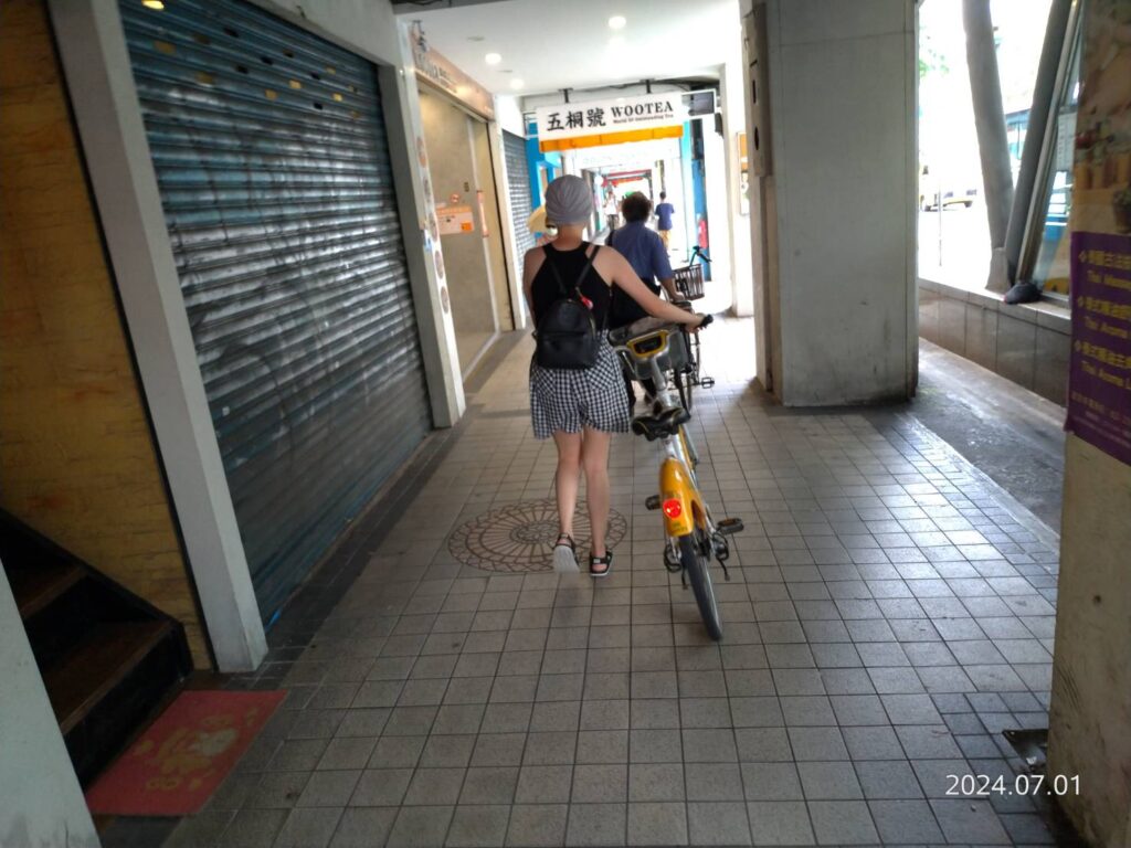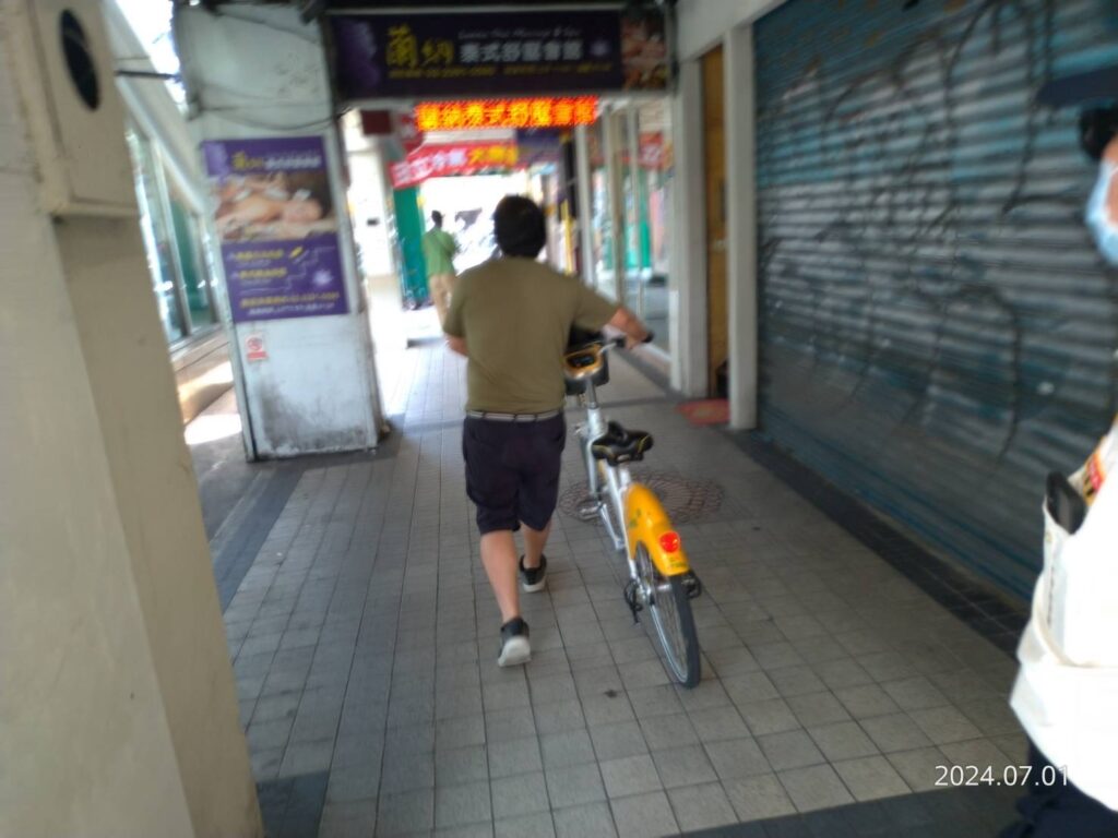 大安區錦華里溫里長表示,古亭捷運站出入口經常有自行車在騎樓違規騎乘,他本人也曾在騎樓行走時被違規自行車撞傷,因此他非常支持YouBike違規記點制度。他強調,自行車行經騎樓時應下車牽行,在人車共道人行道上騎乘時,應禮讓行人,不應按鈴催促。