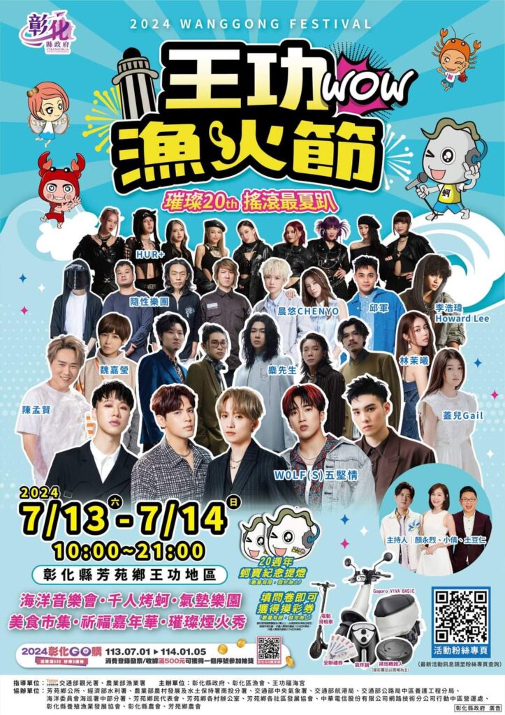2024王功漁火節7月13、14日登場!超強卡司演唱、千人烤蚵、氣墊樂園及煙火秀