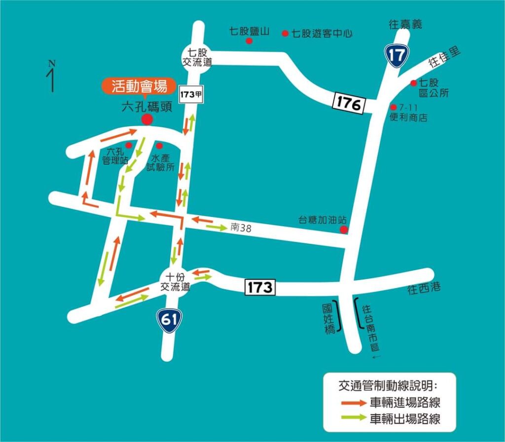 可於六孔管理站周邊路邊單向停車,並於接駁點1-10處候車):-