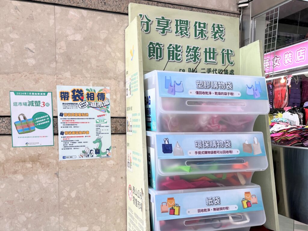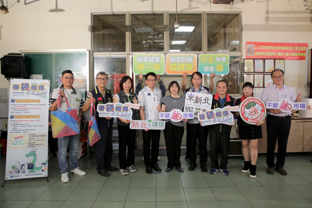 環保局表示,本次結合市場處於泰山公有零售市場舉辦「帶袋相傳逛市場」活動,鼓勵民眾響應減塑,並自今年6月至11月推出集點活動,只要自備購物袋、環保容器進行不塑消費,或攜帶家中用不到的環保購物袋2個至活動櫃台捐贈,就可集點兌換限量衛生紙,活動迄今一個月已有1,110人次參與,共已減少使用4,500個塑膠袋,且已回收210個可供循環使用的環保袋,泰山市場亦規劃與財團法人創世社會福利基金會合作,鼓勵民眾若索取塑膠袋,可以樂捐零錢,達成減塑推廣及促進公益雙贏。歡迎市民朋友踴躍參與,一起將減塑行動融入到生活中,共同成就「不塑市場」。