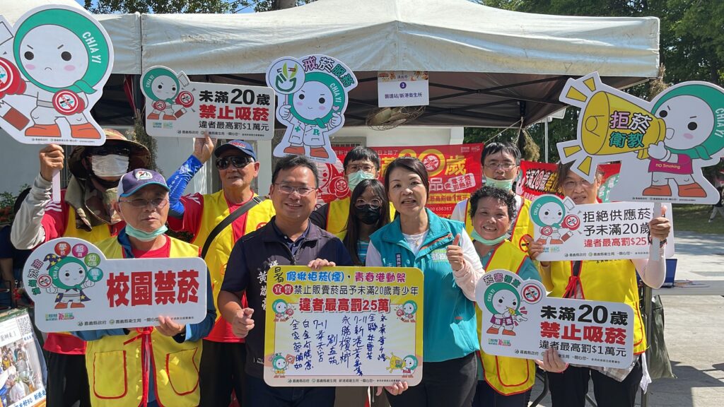 新港衛生所主任林吟珮說明,每年都會結合社區資源「新港港動祭-臺日友好30活動」辦理相關健康議題宣導,此次活動由衛生所全體菸害防制志工們攜手合作,手持標語及布條沿街宣導,希望帶動販賣菸品的商家共同參與拒菸反菸行動,並宣誓承諾不向未滿20歲的青少年銷售菸品。