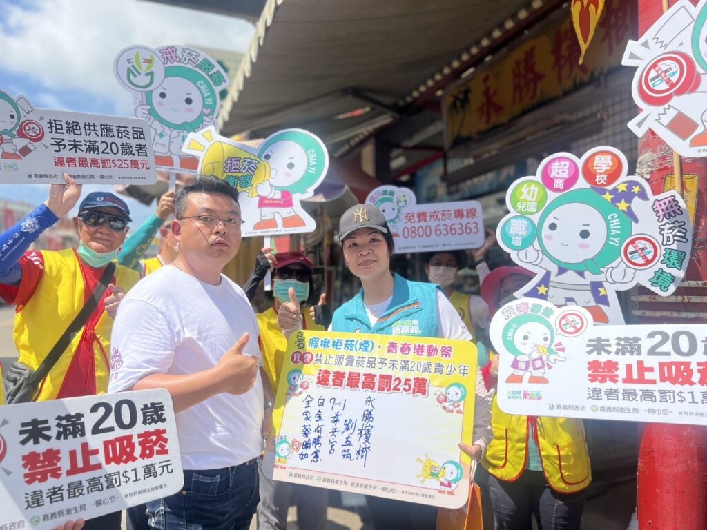 為推動青少年菸害防制,新港衛生所13日舉辦「暑假揪戒菸(煙),青春港動祭」健康活動,帶領菸害防制志工,走訪鄉內校園周邊販售菸品商家及檳榔攤等,邀請商家簽署及拒售菸品予未滿20歲青少年,並結合新港文教基金會港動祭辦理「反菸Q寶嘉族」九宮格遊戲設攤及踩街宣導,吸引青少年注意,強化拒菸意識。