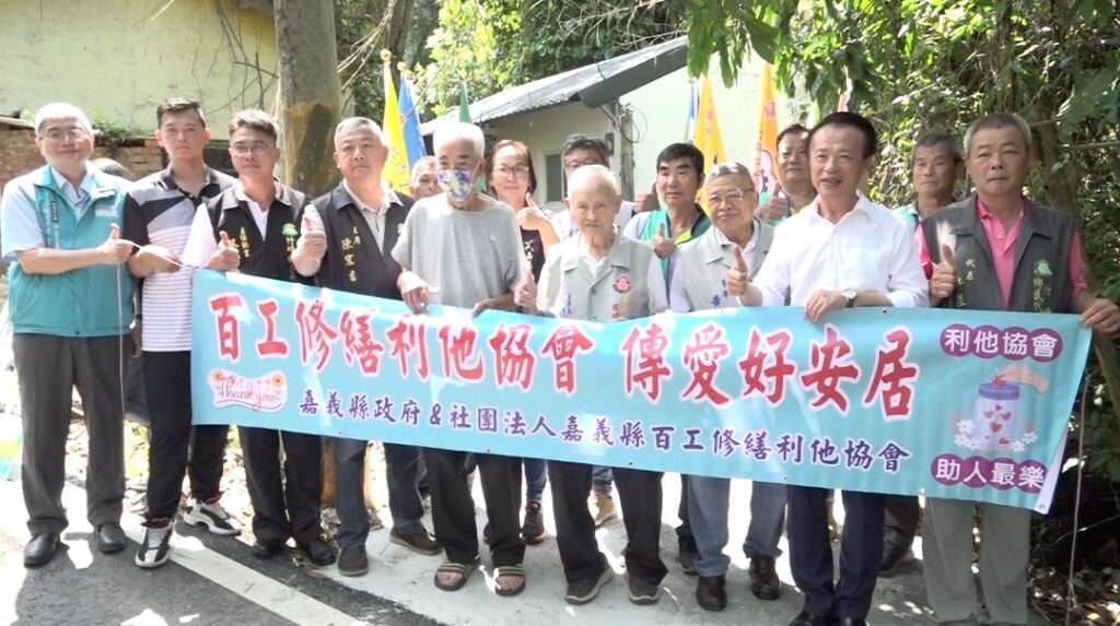 社團法人嘉義縣百工修繕利他協會延續為弱勢修繕房屋的精神,13日完成竹崎鄉林姓老翁房屋修繕,讓原來藏在樹林深處且沒有明顯道路可進入,幾乎看不出有人居住的破損老屋,在修繕後煥然一新,縣長翁章梁特別到場獻上祝福。