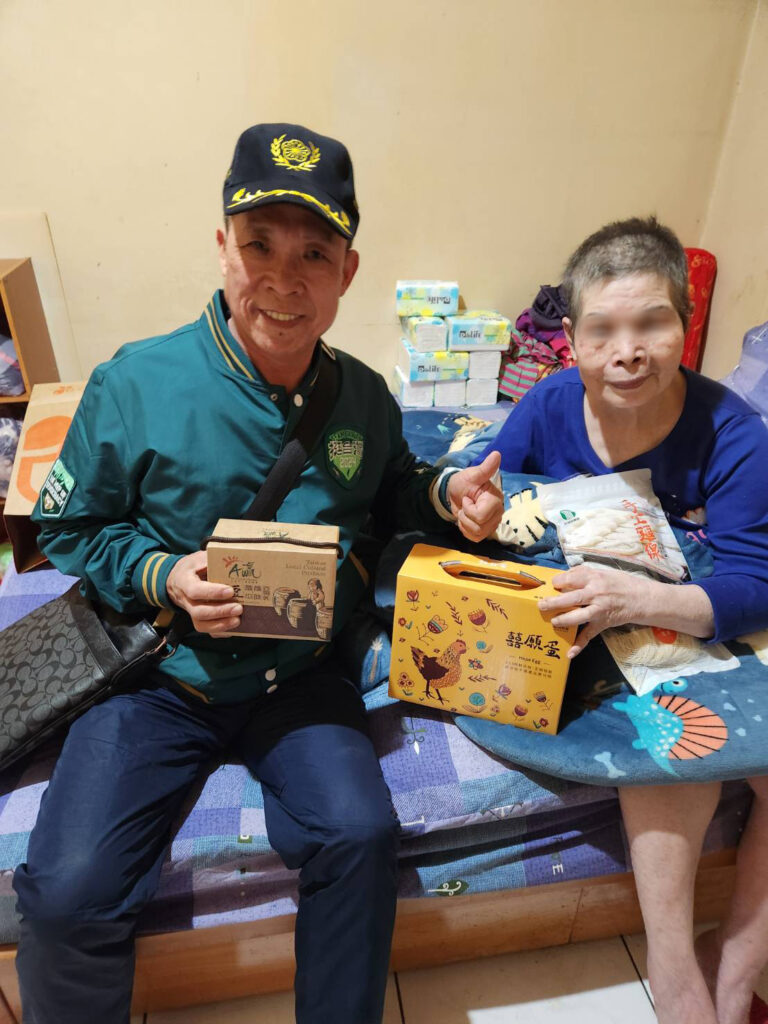 李永芳表示,有次發現里內有位獨居長輩,生活困苦,他上網查詢,發現華山基金會有在幫獨老送餐,於是連絡上蘆洲站長林佩欣,林佩欣和他一起前往訪視,隨後列入送餐的對象,更三不五時提供日常生活用品,讓他深受感動,主動加入成為華山終身志工,也開啟他想為弱勢服務的初心。