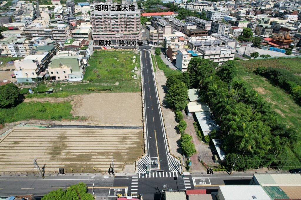 鳳林一路300巷是高雄大寮昭明社區重要聯外道路,但現況道路寬度不一,部分路段僅有4公尺寬通行,市府在去年6月進行大寮區鳳林一路300巷拓寬及打通工程,施工期間面臨各管線遷改停電、排序進場及預埋管線等繁瑣溝通協調,工程最終順利在113年7月15日完工。
