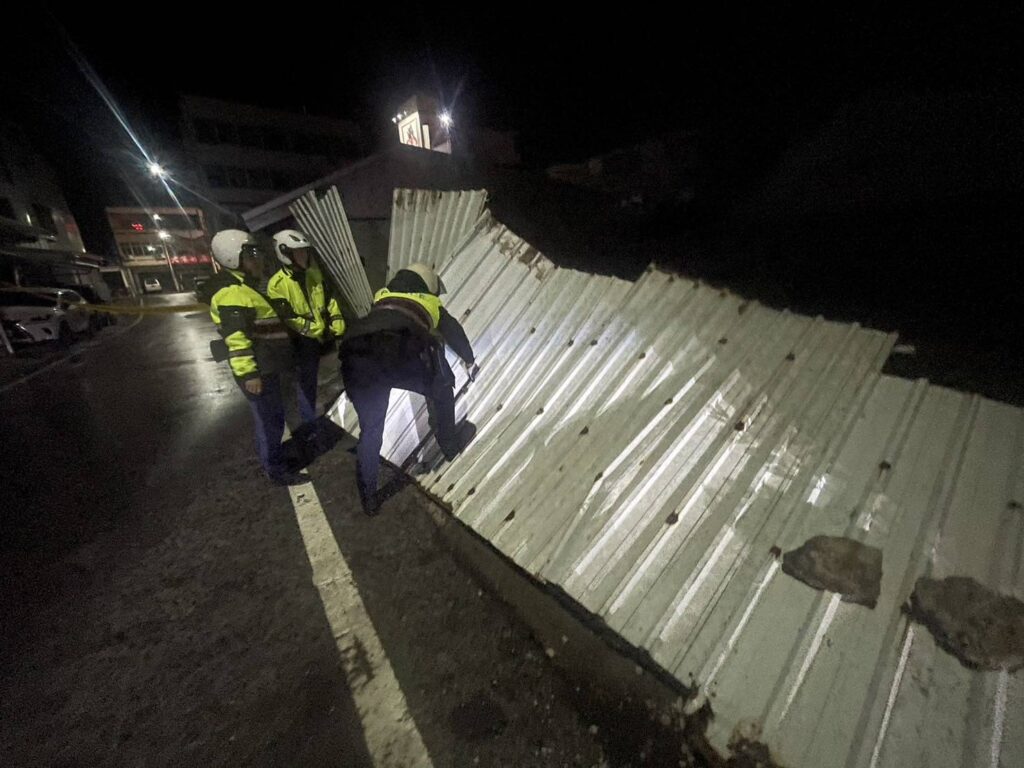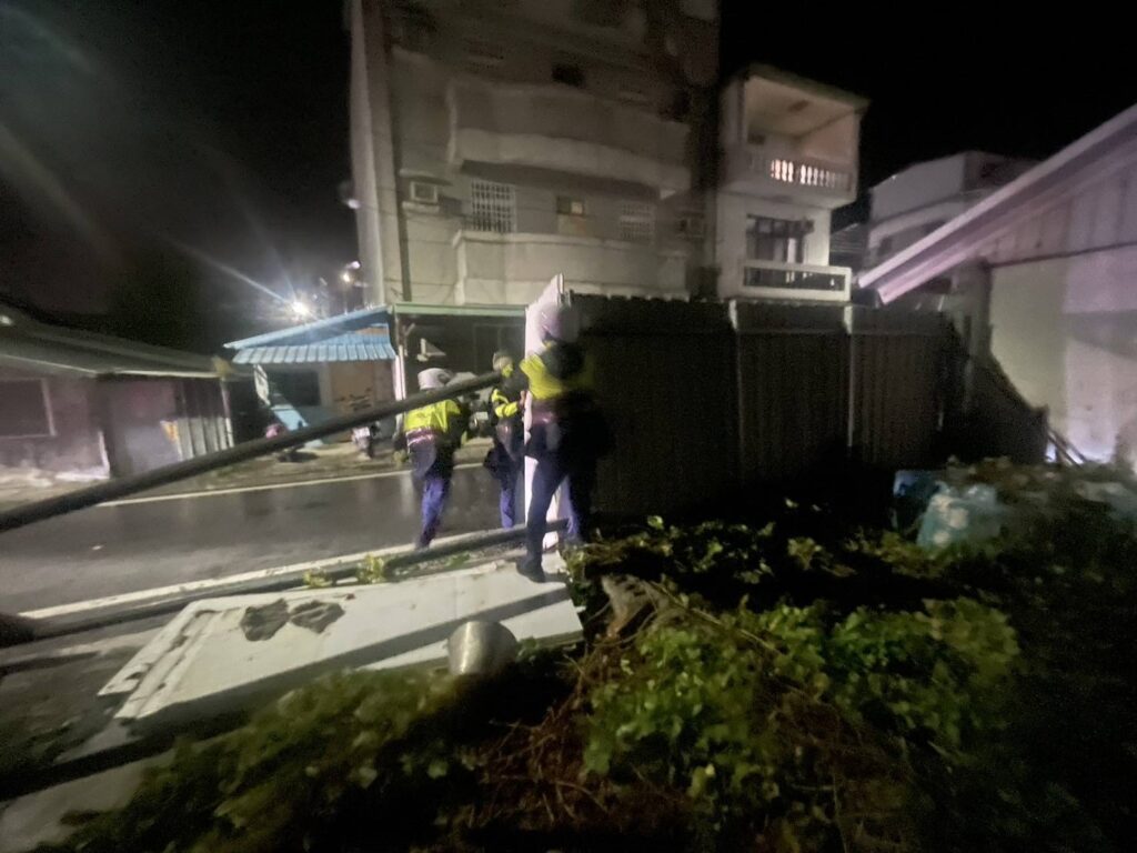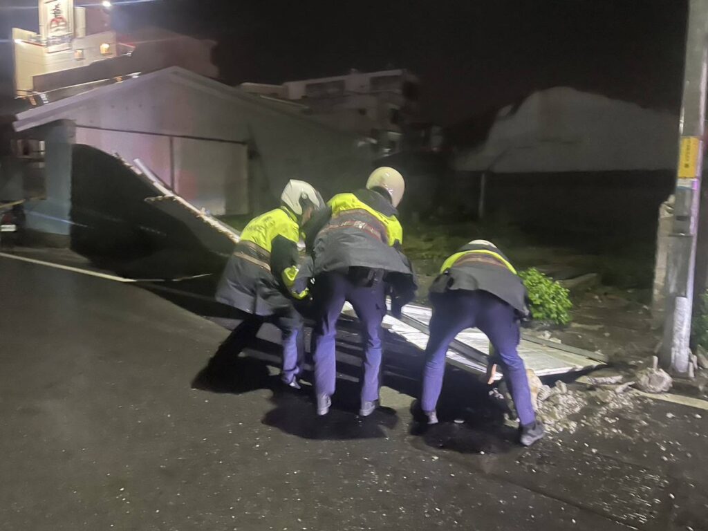 臺東警分局中興派出所巡邏員警在巡邏時發現,長沙街一排鐵皮圍籬即將被風吹飛,為防止意外發生,所長黃憶堯等人迅速進行緊急處置,除將圍籬移至安全位置,並設置封鎖線確保現場安全,至24日23時許,由市公所後續清除圍籬恢復道路通行。