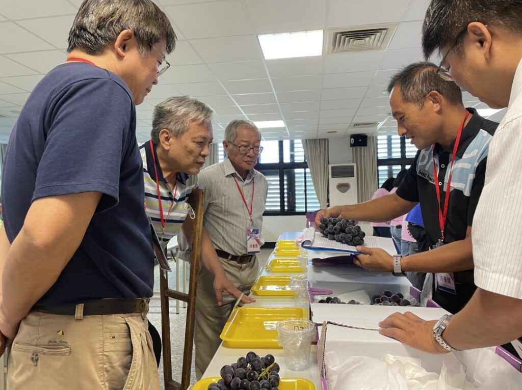 台中市政府農業局輔導新社區農會於今(27)日在新社區農會舉辦「113年度台中市優質葡萄評鑑活動」,推廣台中市鮮嫩多汁、香甜可口的巨峰葡萄,打造台中優質葡萄的品牌形象。此次評鑑計有61組農友報名參賽,最後由新社區農友鄧秀雄勇奪第一名,獲得獎牌及獎金2萬元。