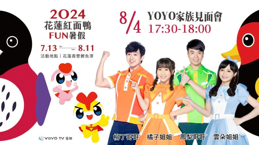 全台最具代表性夏季親子活動「2024花蓮紅面鴨FUN暑假」至8月11日止在花蓮壽豐鯉魚潭舉行;由於受凱米颱風的強風暴雨影響,相關設施需進行完整檢修,為提供安全及良好的觀展品質,展演活動將暫停至7月28日(日)止,於7月29日(一)白天起恢復正常展演。