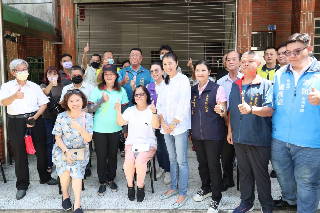3日許縣長二度會勘鴻囍社區的行程,除縣府社勞處副處長張木斌隨行,立委游顥服務處副主任黃彥凱、縣議員蔡孟娥、竹山鎮公所主秘何曉龍、鎮代蔡孟峰、德興里長陳雅紅及眾多社區居民都陪同,許縣長看到原本嚴重下陷的道路已經大致鋪平,加固擋土牆鋼軌樁也持續施設中,立即關心詢問居民是否已能回家居住,在得知因社區受災停水仍有所不便後,隨即拜託負責搶修搶險的竹山鎮公所人員加速排除各項不便及安全疑慮,早日讓居民能安心回家。