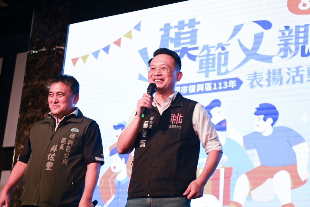 蘇副市長指出,他職場上的老同事,前原民局長林日龍今年獲選為市級模範父親;蘇副市長談到,原住民族議題特別需要仰賴在地人才,也感謝林前局長的努力,幫復興區的建設與服務品質打下良好的基礎。
