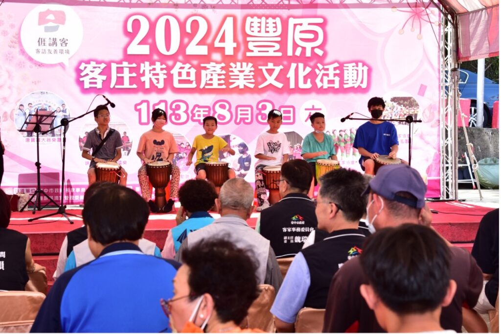 豐原區長洪峰明表示,今日活動精彩熱鬧,有鎌村社區發展協會帶來的非洲鼓、客家手語歌、客家國樂以及帶動跳等演出,展示客家文化的多樣性與融合性。此外,活動還特別邀請唐寶寶大器樂團擔綱開場演出,他們以充滿活力的表演和獨特的音樂風格為活動增添了色彩,展現出現代與傳統的完美融合。