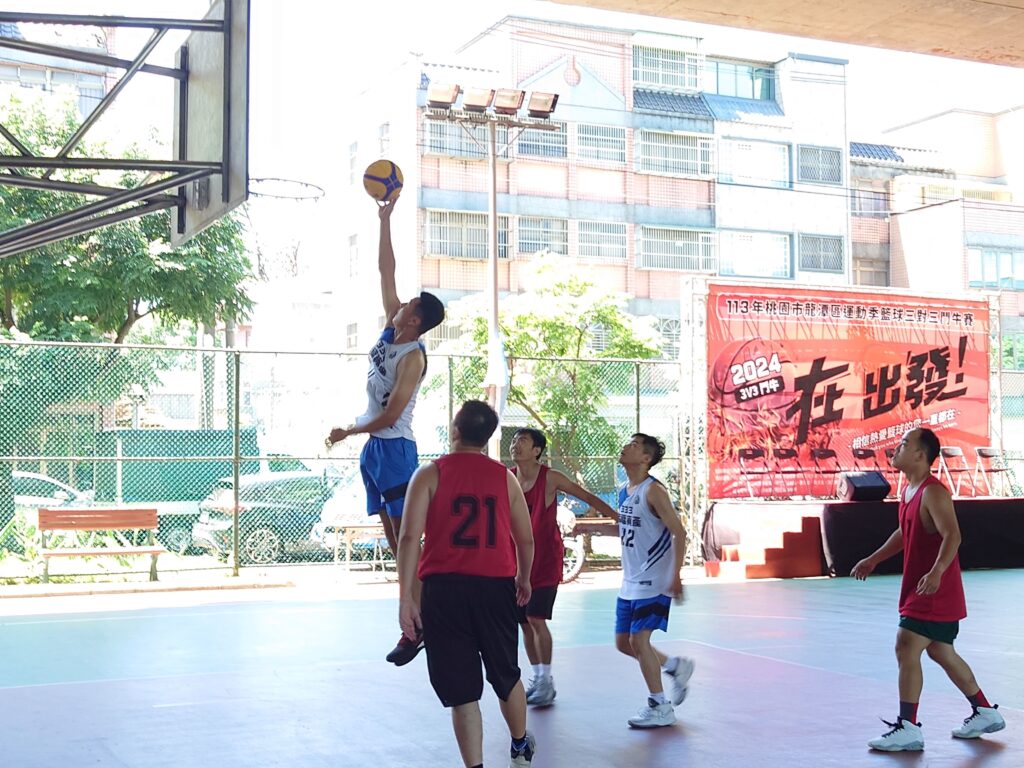 今天的「籃球三對三鬥牛賽」是龍潭區運動季的重頭戲之一,共有約120隊參賽,分為國小、國中、高中、壯年及公開組等組別,展現了不同世代對這項運動的熱愛。比賽以進攻為主,吸引了大量觀眾駐足觀賞並熱情加油,現場氣氛熱烈。中午的「三分球趣味競賽」更為緊張的比賽增添了娛樂性。
