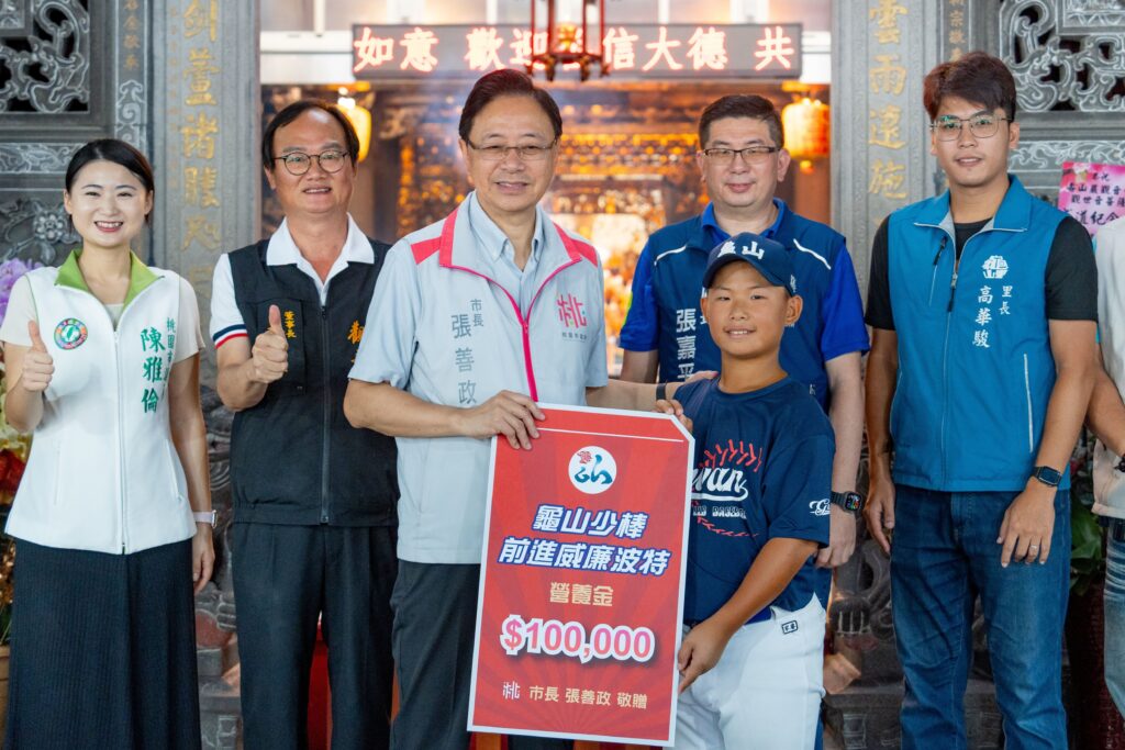 桃園市長張善政今(6)日上午前往壽山巖觀音寺,出席「為龜山國小棒球隊前進美國威廉波特世界少棒大賽祈福活動」。張市長表示,龜山國小棒球隊於2002年成立,在總教練李政達的帶領下,多次代表臺灣參加國際賽事,不僅是臺灣之光,更是全體桃園市民的驕傲,今(113)年6月球隊於韓國舉辦的世界少棒聯盟(LLB)亞太區選拔中,榮獲亞太區冠軍,將於8月8日前往美國威廉波特參加第77屆世界少棒大賽,祝福小球員們發揮傑出實力,展現平時刻苦訓練的成果,為國爭光。