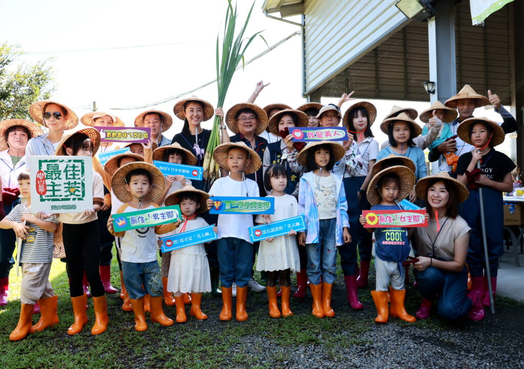 活動一開始在農場專業農人的帶領下,穿上青蛙裝下田體驗,孩子們則坐在茭白筍採摘桶內,由家長推著悠遊水田中,近距離觀察植株與水田生態,聽著農人解說茭白筍的採收、栽培技巧及注意事項,深入地瞭解茭白筍;隨後也由在地青農帶領大家進行茭白筍的烹飪示範,教導如何將這些新鮮的食材轉化為美味佳餚,製作好吃的茭白筍手卷,品嚐茭白筍鮮美好滋味。