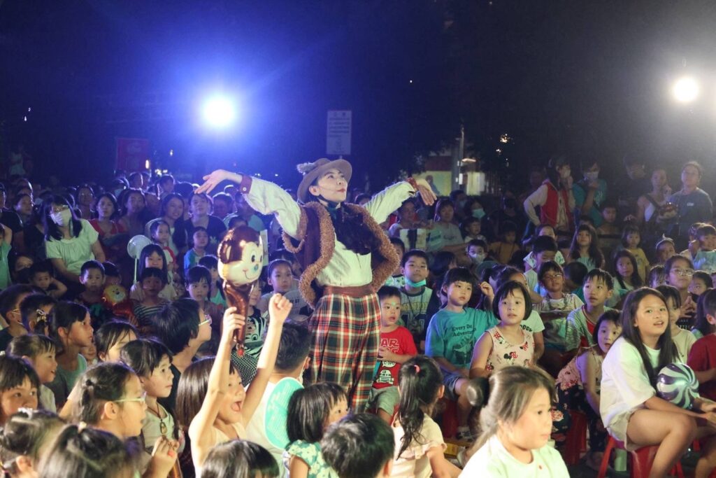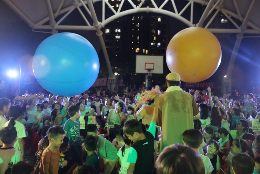 本場活動攜手蘋果劇團,為小朋友暑期收假做最後準備,透過淺顯輕鬆的戲劇內容,佐以琅琅上口的音樂歌曲,讓孩子們從劇中學習為人基本的尊重與負責的態度,發展正向的價值觀。舞台旁還有政府單位的政令宣導攤位,透過小遊戲與互動可以了解機關宣導資訊或最新消息。當天蒞臨觀賞演出的爸媽和小朋友,還特別參與「現場打卡上傳fb送可愛氣球」周邊活動,開心將禮物帶回家,度過美好夏夜。