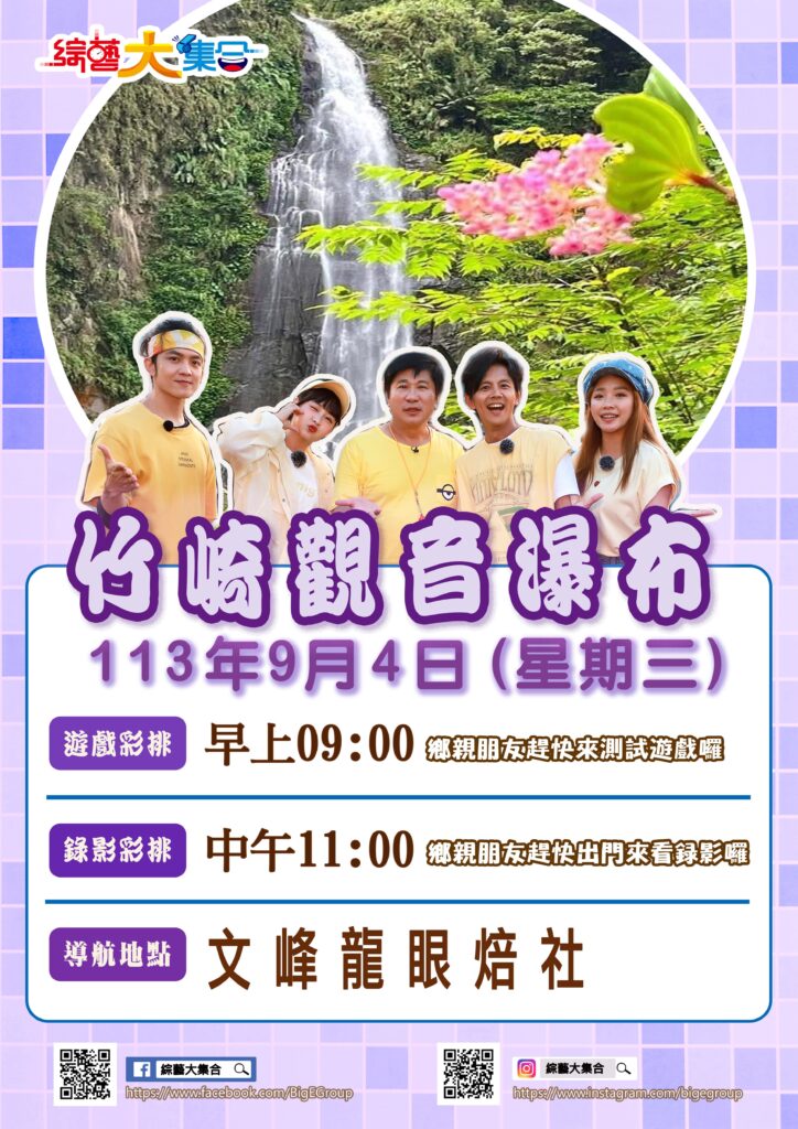 嘉義觀音瀑布9月4日免費入園!還能近距離目睹胡瓜領軍「綜藝大集合」藝人錄影