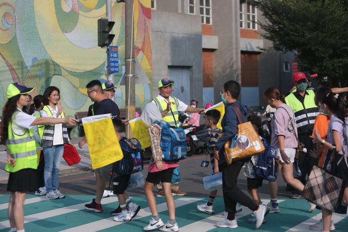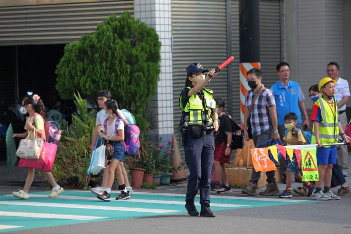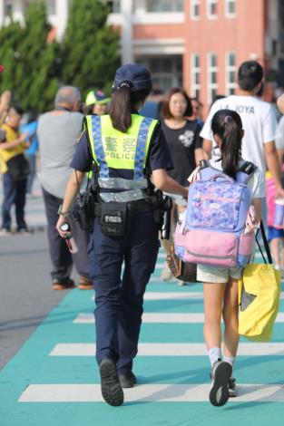 另外警察局婦幼警察隊親切地與學童及其家長互動,並隨機發送實用文具宣導品,傳達「婦幼人身安全」等重要保護觀念,教導學童們正確保護自己身體的觀念,強調人與人之間相處需尊重對方主觀感受,對於自己身體的隱私處不可隨意讓他人碰觸也不可以隨意拍攝自己身體裸照傳送給別人;交通警察隊進行交通安全宣導,呼籲用路人及家長,載送學童時應遵守道路交通規則,車輛勿違規停車,不貪圖方便任意橫越馬路,並向學童宣導過馬路需行走行人穿越道及「路口慢看停」等交通安全觀念,讓守法觀念從小紮根,共同建構學童交通安全環境。