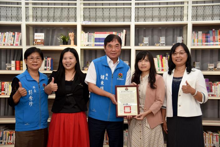 縣長鍾東錦甫進入共讀站即被特殊設計與柔和燈光所吸引,他隨後頒發賀狀給室內裝修總監呂邑純,肯定總監與設計師團隊的用心,並發揮巧思展現創意,為學校和社區打造一座金獎共讀站。目前共讀站藏書超過1萬7000冊種類多元的書籍,鍾東錦鼓勵學生和社區鄉親長輩善加利用,豐富自己的學識與內涵,人生也會因閱讀而更臻美好。