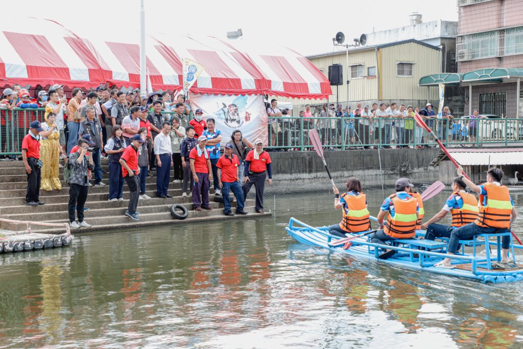 鹿草鄉鹿東社區今7日舉辦涸魚文化季,活動重現傳統涸魚牽罟的過程,捕獲的魚類全部免費發送,不少民眾自備環保容器裝走現撈漁獲,現場還舉辦精彩刺激的膠筏競渡,嘉義縣長翁章梁、鹿草鄉長顏珮瑜、義竹鄉長黃政傑、縣議員江佩曄、詹琬蓁等人到場為競渡隊伍加油。