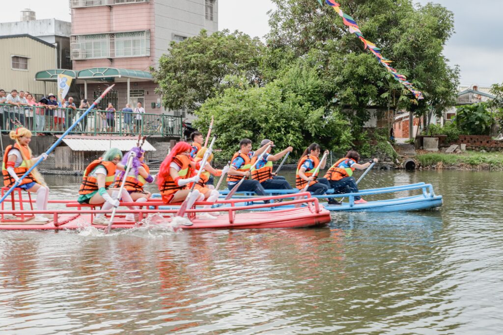 嚴珮瑜說,今年有許多隊伍挑戰競速膠筏,民眾還能票選出最佳COSPLAY造型隊伍;古厝園遊市集設置各式攤位,提供鹿草鄉在地特產及異國美食;紅磚巷弄的童玩一條街設有闖關遊戲及命運大輪盤。此外民眾還能在現場參與皮影戲偶及行動蚊香器DIY,晚上泰安宮將舉辦懷舊音樂會,讓民眾乘涼聽音樂。
