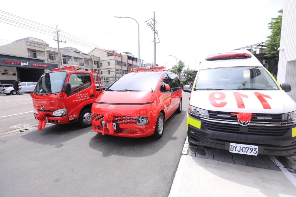 消防局也感謝企業團體捐贈1台高頂救護車(大肚區農會、大肚鎮元宮、大東金聖公祠、大東福德祠聯合捐贈)、1台消防警備車(鑫綠泰鑄造廠股份有限公司捐贈)、1台自動心肺復甦機-LUCAS(三本久實業股份有限公司捐贈)、1台自動體外心臟電擊去顫器-AED(文華扶輪社捐贈)、1組健身訓練器材(興農股份有限公司捐贈),提升大肚分隊救災能量,也盼藉此拋磚引玉,喚起社會響應公益。