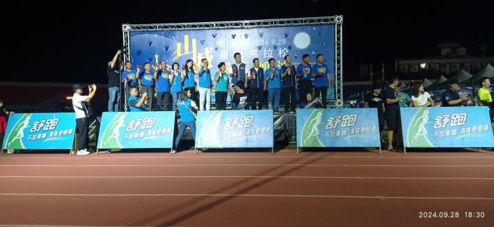 苗栗縣政府為持續推動全民體育,特地在夏末初秋的夜晚裡,結合苗栗市的樟樹綠廊及浪漫優美的河濱公園,還有最著名的景點—客家圓樓,於9月28日教師節當天假苗栗縣立體育場盛大展開「運動i臺灣2.0計畫-2024山城星光馬拉松」活動。今天天氣非常之涼爽,相當適合路跑。苗栗縣路跑協會孫素娥理事長、邱政軍立法委員、教育處葉芯慧處長、農業處蔡政新副處長、工策會陳怡樺總幹事、苗栗市余文忠市長、苗栗縣農會鍾金光總幹事、苗栗市農會謝錦明總幹事等人到場為跑者加油打氣,並為各組鳴笛開跑。