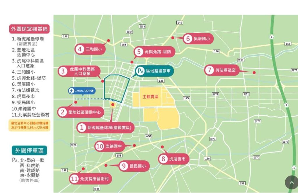 交工局說,國慶日當天會場於學府一路、站前西路、永興南七路設置近8000個汽車車席停車場,與永興南五街設置2600個機車車席停車場。國道民眾可透過國道1號西螺及斗南交流道,再連接縣道到達停車場;使用一般道路民眾則可經由縣道145、縣道156、縣道158等周邊道路前往停車場。