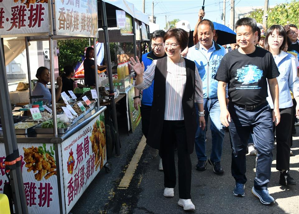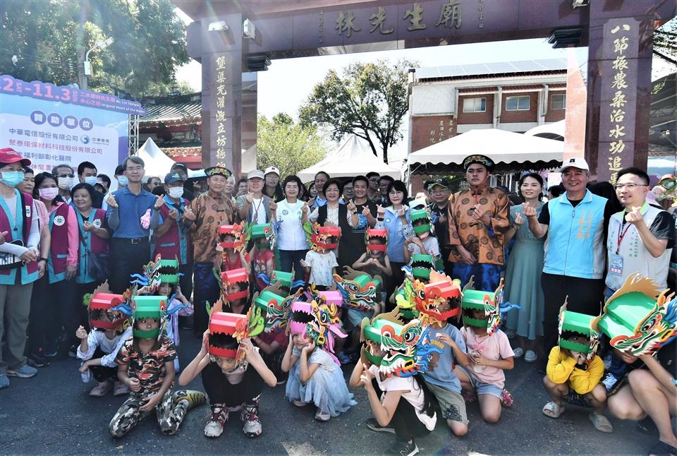 王縣長表示,上週明華園在水心之初大草原上演<八堡圳傳奇>,讓鄉親看到先人胼手胝足地開鑿八堡圳,讓彰化成為農業大縣,養活了許許多多台灣人民,相信讓很多人為之感動。今天透過祭典及活動,盼能福佑彰化年年大豐收,也提醒後代子孫「飲水思源」、「食果子拜樹頭」的美德。鄉親來到二水,可以好好享受慢活氛圍,悠閒地欣賞二林好山好水,今天中午更能在二水享用以麻糬茄、白玉苦瓜所做成的美味料理,晚上則可欣賞藝人帶來的精彩演出,在彰化住一晚,明天一早再參加千人健行,體驗慢遊的樂趣。