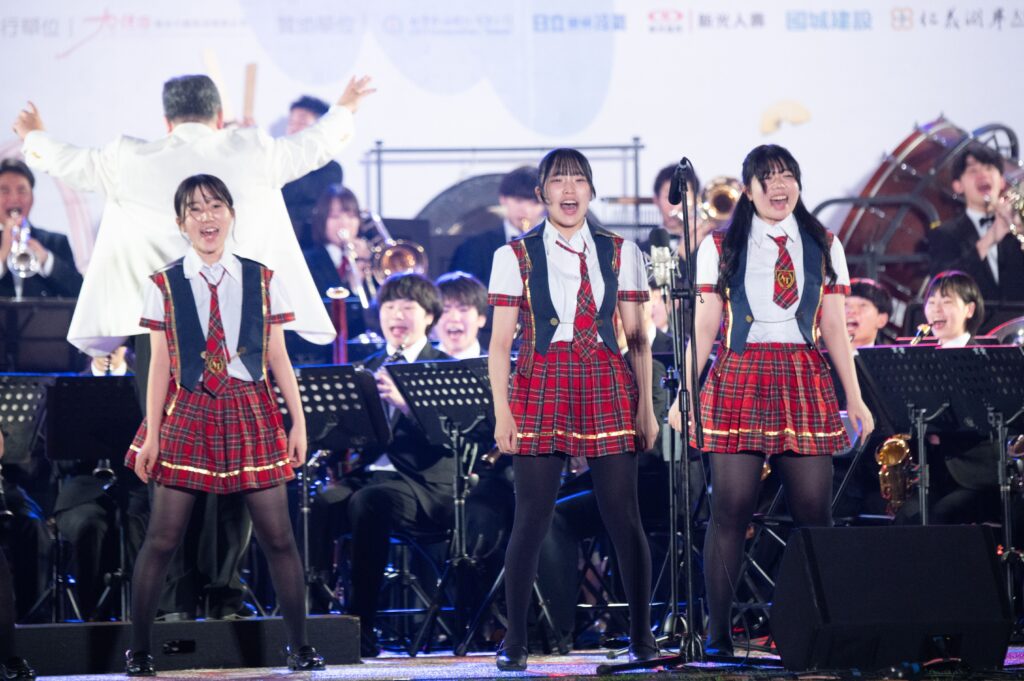 靜岡大學吹奏樂團演出昨日吸引滿滿大小朋友欣賞,展現「票房保證」的管樂魅力。樂團不僅演奏多少膾炙人口的樂曲,指揮三田村健老師還演唱「望春風」,讓樂迷感到驚喜。樂團還與滿滿人潮一同玩起波浪舞,文化公園充滿樂音與笑聲。