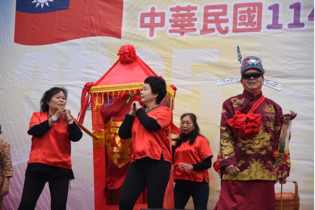 升旗典禮前,先由陸軍澎湖防衛指揮部帶來慷慨激昂的戰鼓表演,彰顯軍人的氣概;菓葉社區則由阿公阿嬤們演出生動有趣的《菓葉ㄟ素蘭小姐要出嫁》,吸引眾人目光;而好娛樂創意舞蹈工作室充滿活力的熱舞表演,營造出濃厚的節慶氛圍。升旗典禮由國立澎湖海事高級水產職業學校演奏國歌,並由菊之音小型表演歌劇坊領唱,振奮人心。