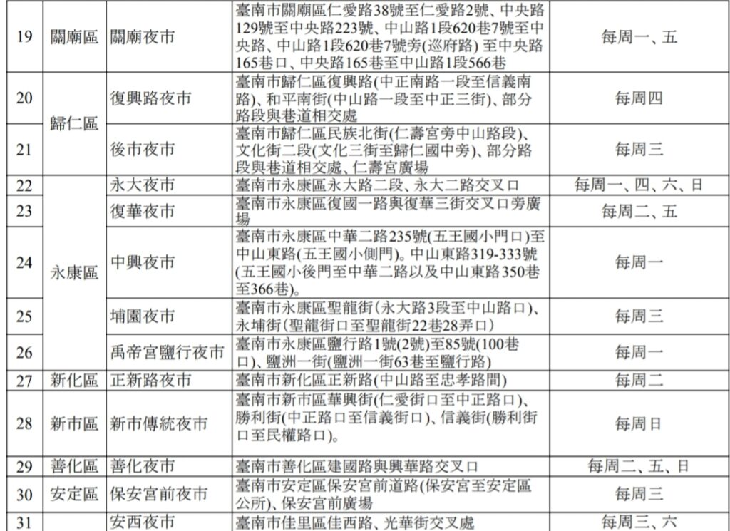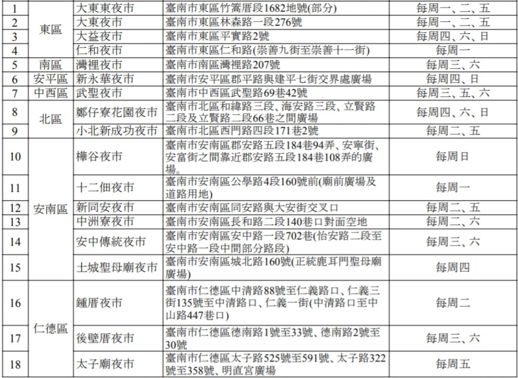 更多旅遊訊息請詳閱台南市市場處夜市名冊: