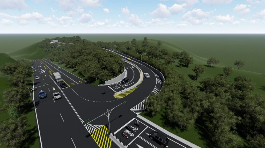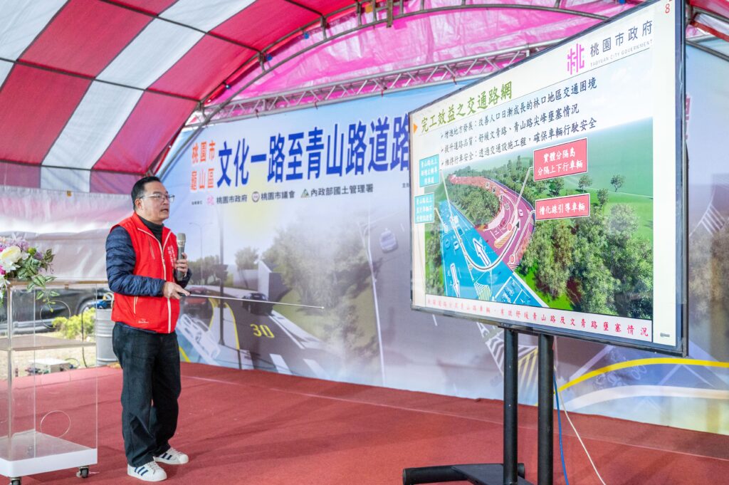 工務局表示,本工程總經費約2.72億元,其中內政部國土管理署補助2.14億元,市府自籌5,800萬元,預計於115年下半年竣工。本案位置屬於林口特定區計畫(桃園市部分)都市計畫範圍,由龜山區振興路與文化一路路口向北銜接至青山路2段0K+170處,新闢道路長度約350公尺、寬度約15公尺,配置為雙向共3車道(1進2出),並規劃設置人行道、擋土牆、路燈、標線與號誌,以及道路兩側增設縱向排水系統等。此外,考量車輛迴轉半徑及行駛安全,於青山路北上路口設置偏心左轉專用車道,以建構更安全順暢的交通環境。