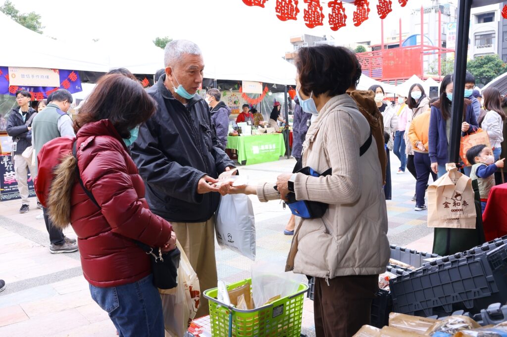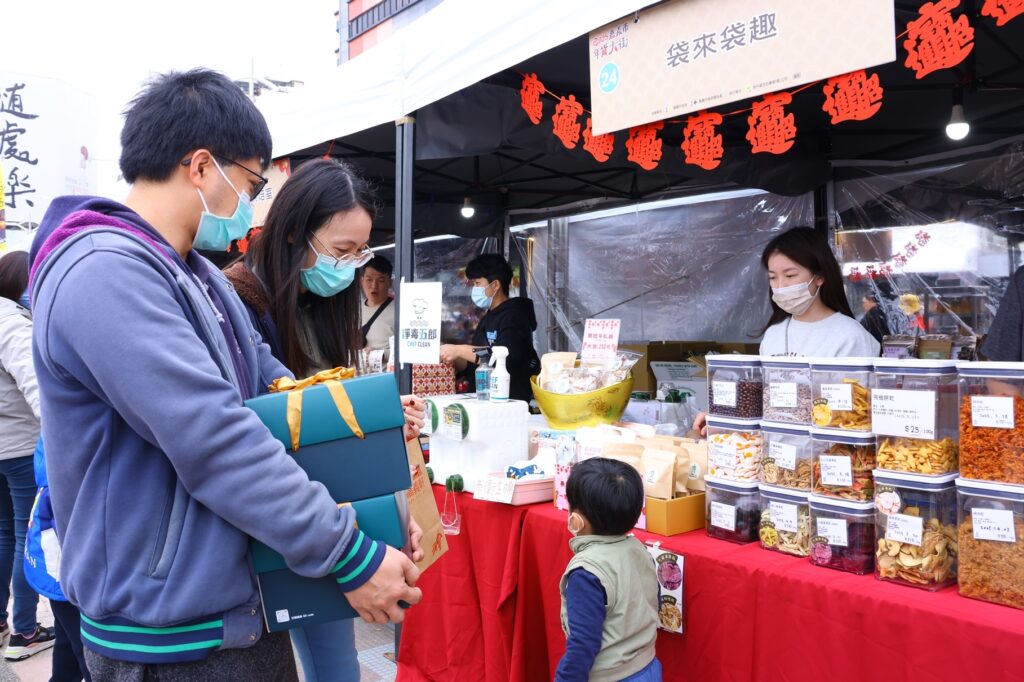 活動現場聚集許多市民朋友正在熱烈採購,多攤店家隊伍大排長龍,有攤商分享今年是第二年參加,生意只能用「非常好」來形容,去年賣到來不及備貨,今年比去年準備更多原物料,希望在過年前為自己加薪。民眾林小姐與先生雙手提滿年貨,己是連續兩年來採買要送親朋好友的年貨,今年攤商更多元好買,非常方便。