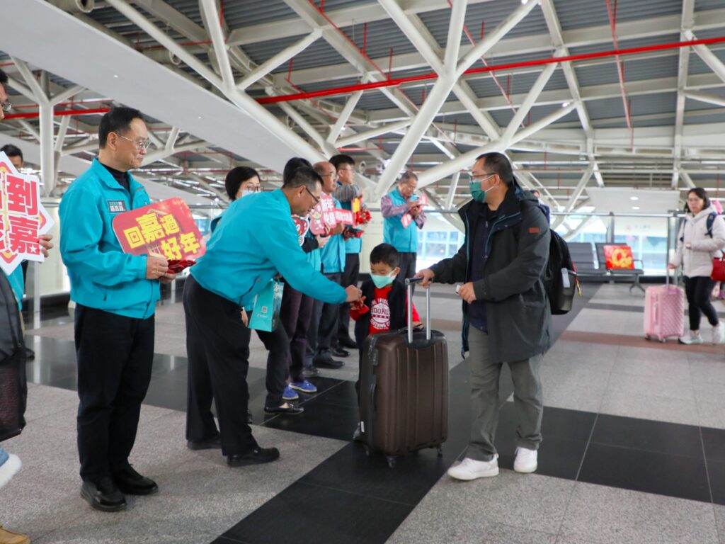 嘉義縣長翁章梁率縣府團隊在高鐵站迎民眾回「嘉」