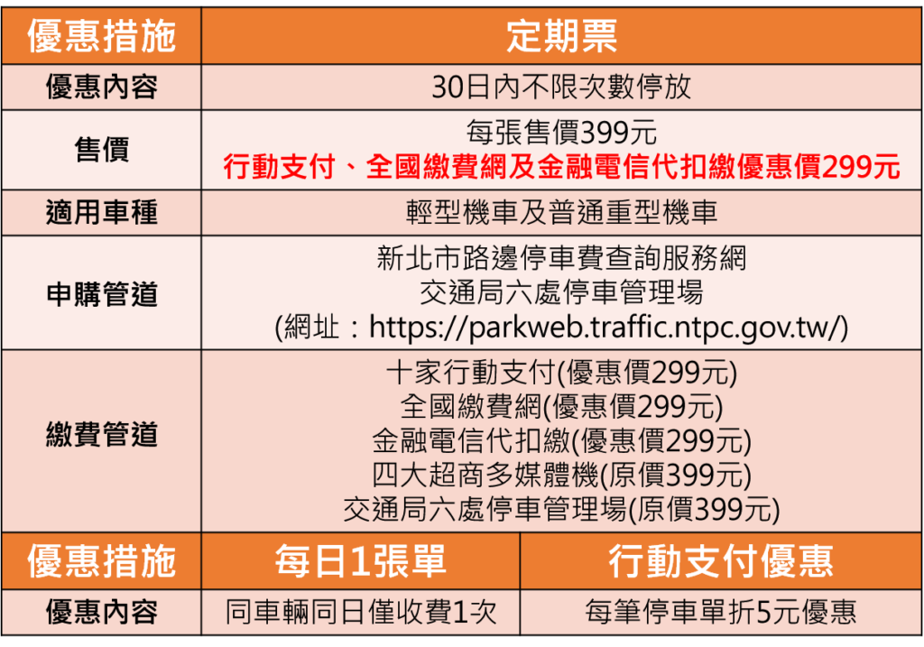 交通局將持續盤點市轄內大眾運輸場站及停車需求較高的商圈及觀光景點,評估後依序納入機車收費管理範圍,交通局也提醒機車族多使用「路邊機車停車30日定期票」、「每日一張單」及「行動支付優惠」3重優惠措施,如有相關問題,可上交通局網站(https://www.traffic.ntpc.gov.tw/)或撥打1999市民專線查詢。
