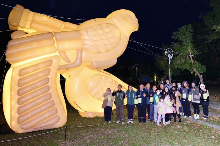 新營波光節點亮天鵝湖畔 黃偉哲發送造型雞蛋糕邀民眾賞燈同樂