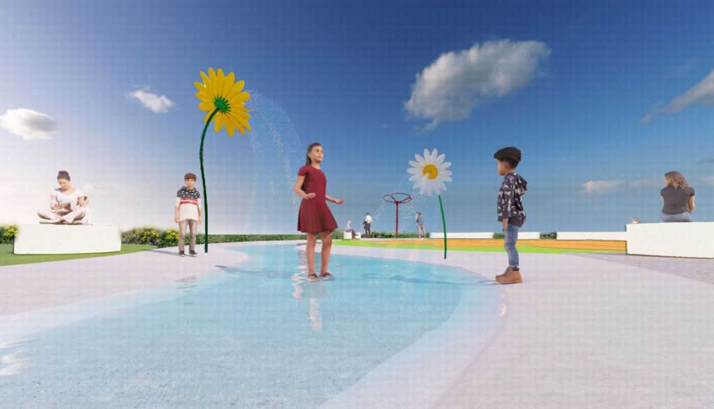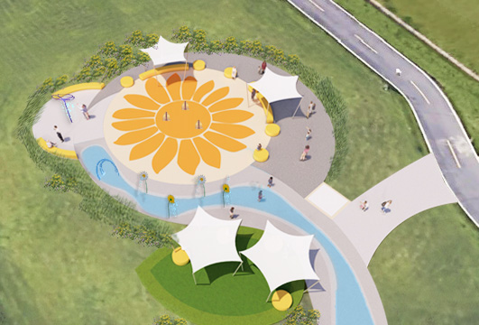 夏天小朋友瘋狂喜愛的戲水設施,現在新北市政府高灘地工程管理處在三重重陽橋下淡水河畔高灘地,太陽地景兒童遊戲場旁打造全新第4座的水樂園–「花漾水樂園」,以獨特的向日葵主題及7種不同的噴水設施,及1條戲水道,結合現有的太陽地景兒童遊戲場,打造全新的水陸遊憩場域。