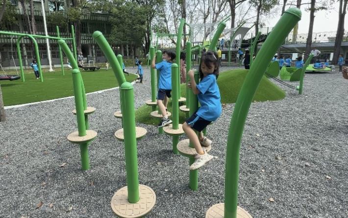 黃偉哲強調,未來市府團隊將努力達成「區區有特色公園」的願景,打造大人、小孩全齡適宜的休閒空間,讓每個孩子都能在安全、富有挑戰性的環境中快樂成長,家長也能安心陪伴。也邀請大小朋友利用假期,來臺南一同體驗這座充滿創意與藝文氛圍的遊戲場。
