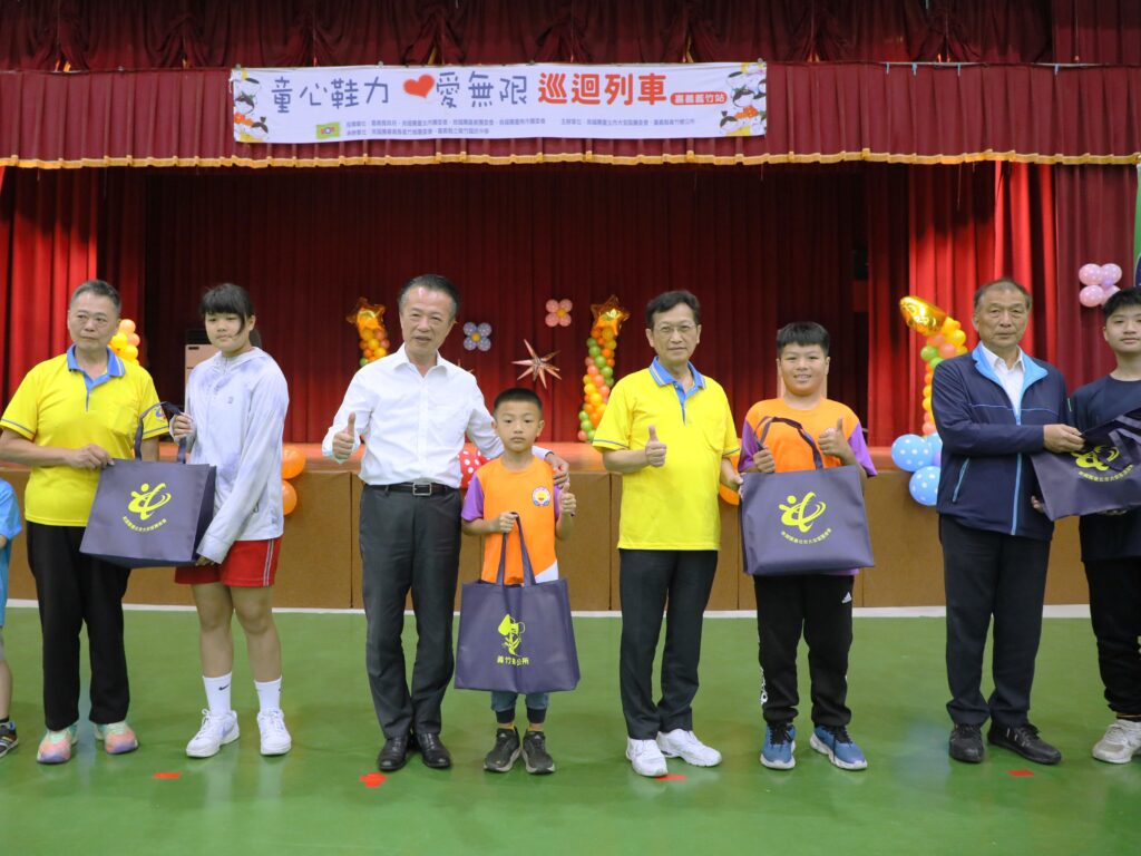 救國團「童心鞋力」巡迴列車抵達嘉義縣義竹鄉,捐贈國中小學童運動鞋